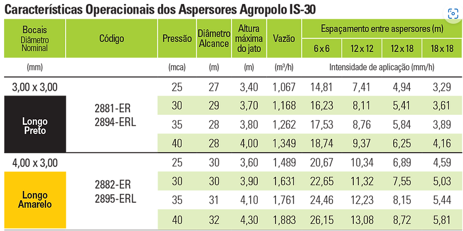 O aspersor escolhido foi o Agropolo IS-30: