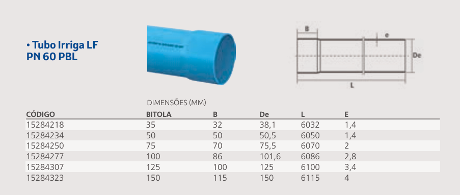 O diâmetro calculado é utilizado para a escolha do diâmetro comercial. Foi utilizado o catálogo Tigre para irrigação (página 74.)
